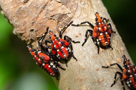 One pest is the spotted lanternfly, which can cause significant damage to crops and native trees. The SLF threatens many fruit crops, such as apples, apricots, cherries, grapes, hops, nectarines, peaches, and plums, as well as native maple, oak, pine, poplar, sycamore, walnut, and willow trees. DEM officials note the lanternfly is an “excellent hitchhiker” spread through human movement.”